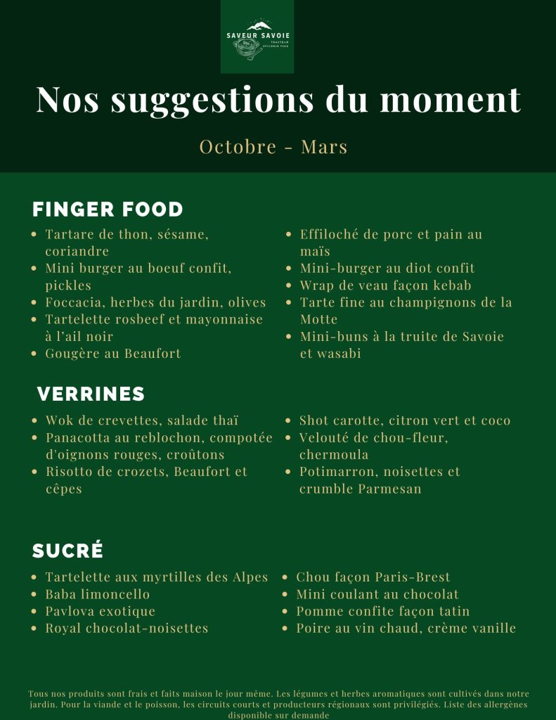 Découvrez le menu de Saveur Savoie traiteur sur Chambéry