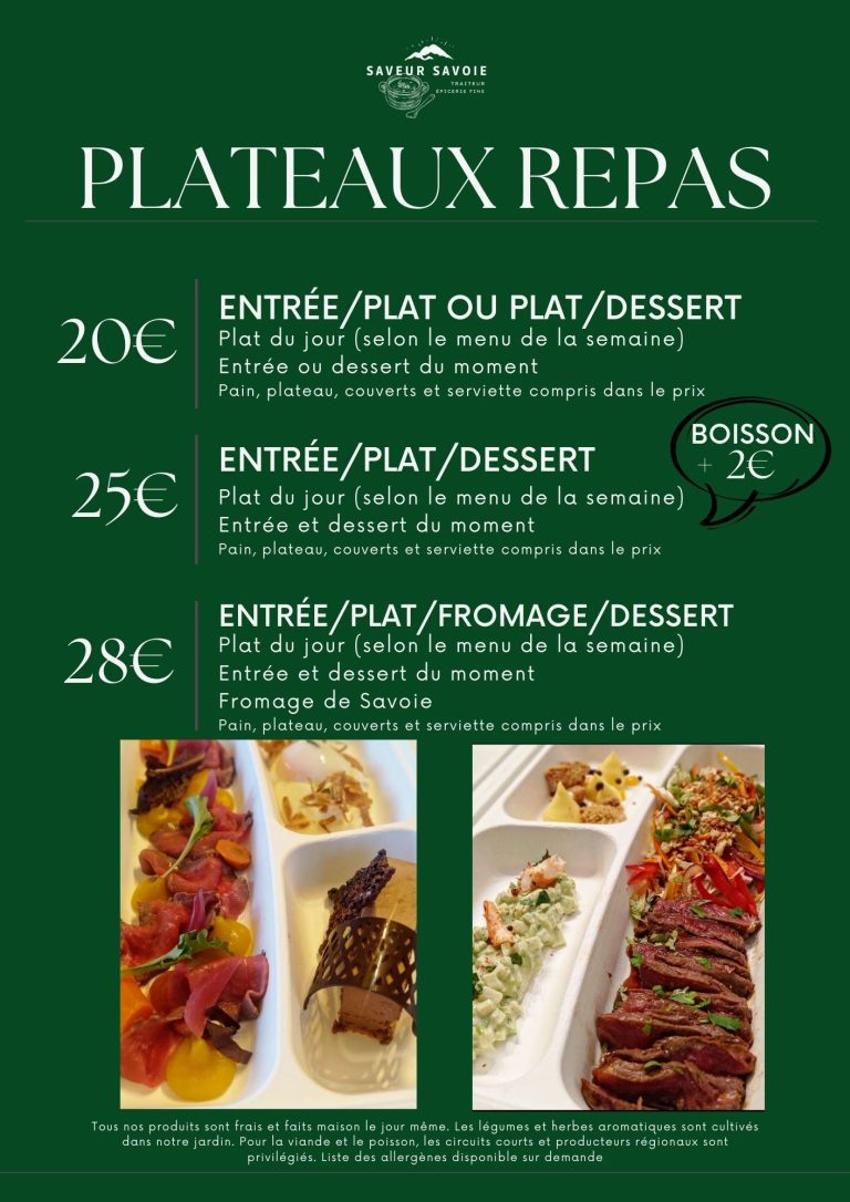 Pour en savoir davantage sur la composition des plateaux repas, n’hésitez pas à contacter Saveur Savoie au 07.69.06.48.99.